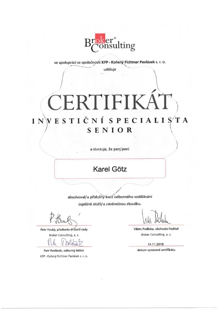 Svět investic je širokým pojmem a každý, i zkušenější investor potřebuje svého průvodce. Ať už najdete své budoucí finanční zabezpečení v investicích do nemovitostí, nebo finančních produktů, díky dlouhodobé praxi vám mohu doporučit nejvhodnější řešení a vysvětlit, co bude jeho přínosem.